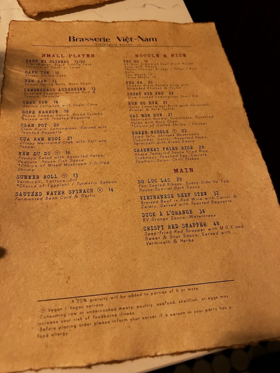 Welcome to Brasserie VietNam, a culinary gem nestled in the heart of Greenwich Village, New York. This charming establishment brilliantly melds traditional Vietnamese flavors with French culinary finesse, creating a distinctive menu that delights the senses. Each dish not only showcases authentic tastes but also presents them in an exquisite manner.